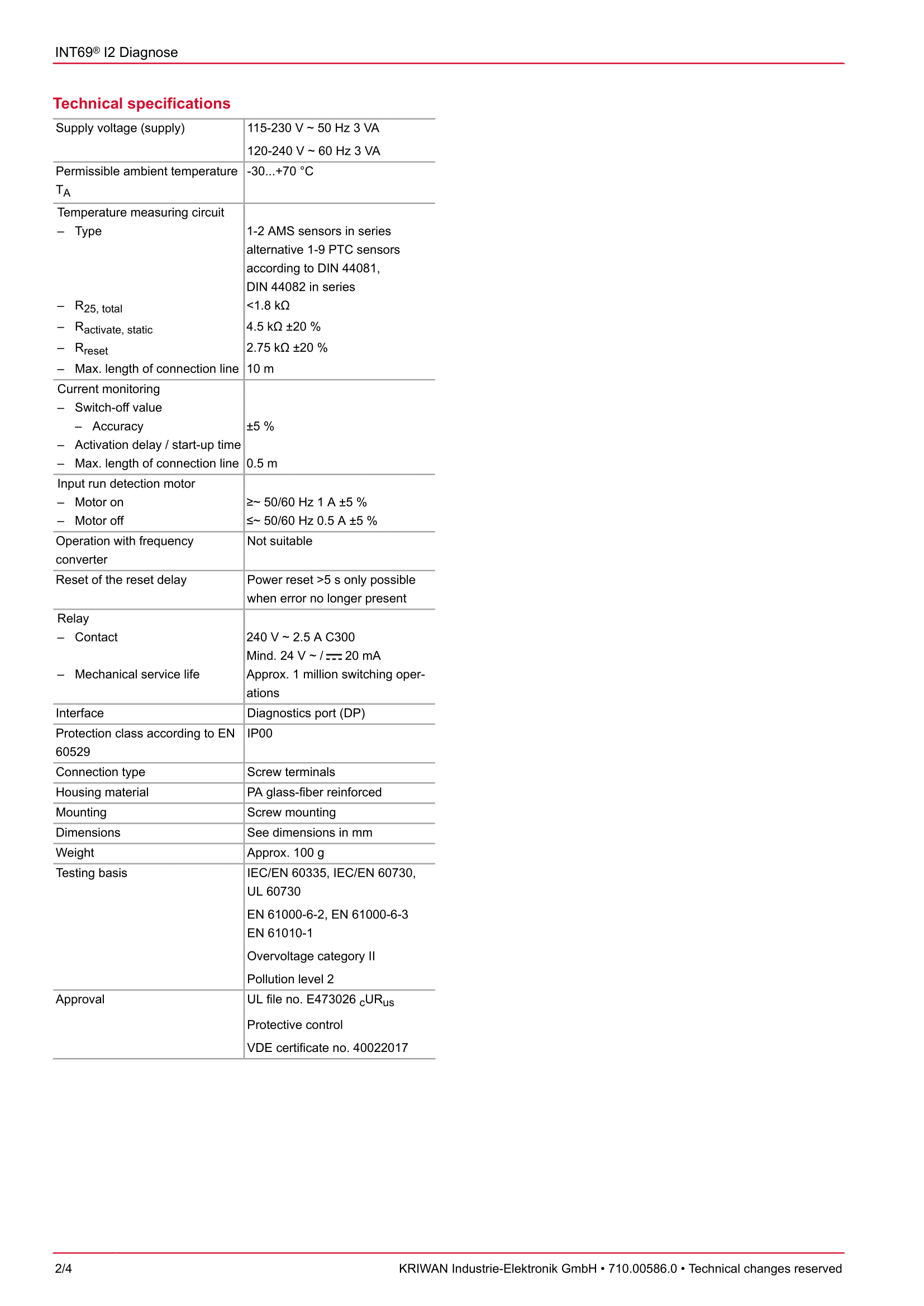 DISPOSITIVO KRIWAN INT69 - PROTETTORE MOTORE ART.-Nr.: 22A460 - AC50/60HZ 115/120V,230/240V