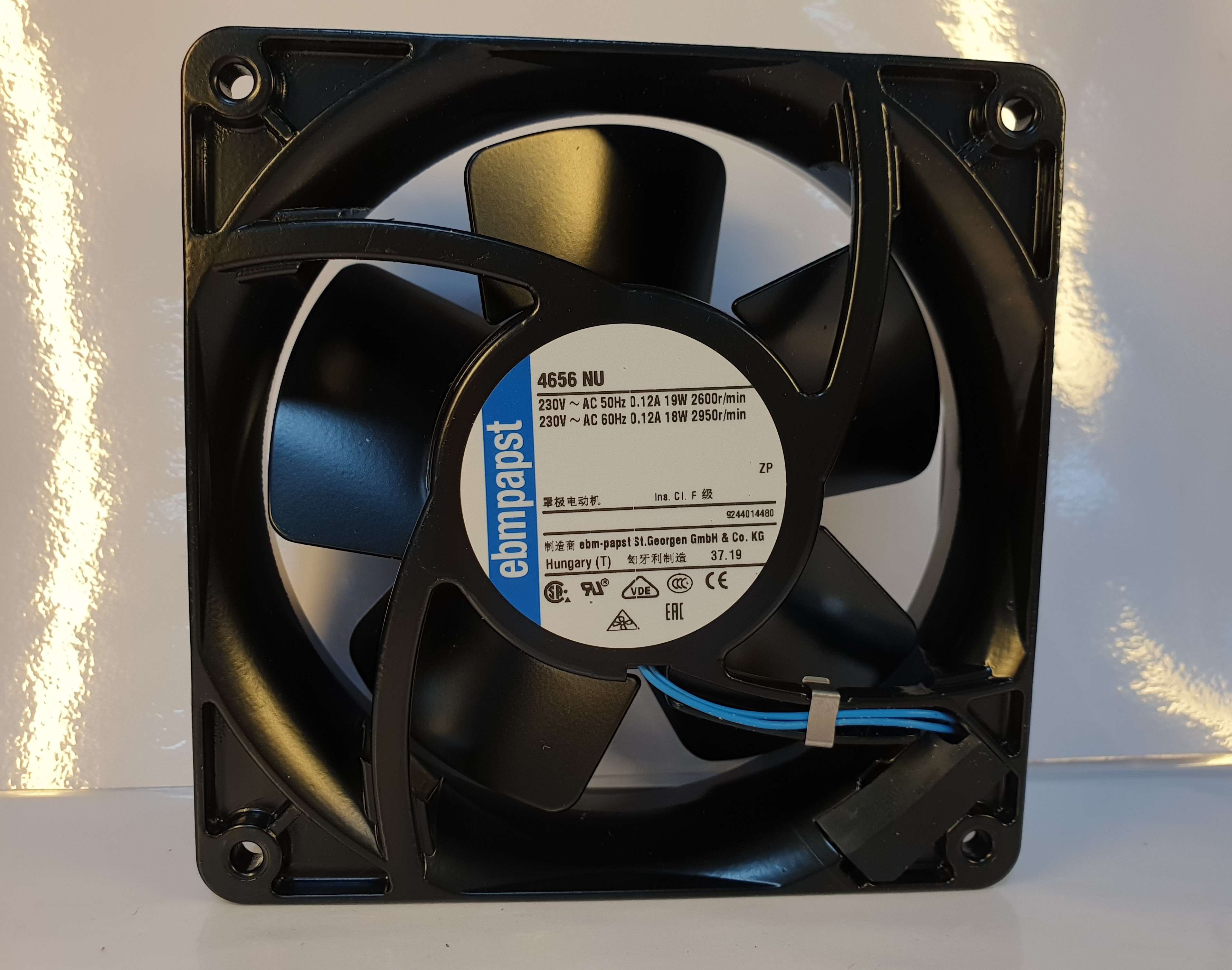 VENTILATORE EBM-PAPST 4656 NU AC Fans AC Tubeaxial Fan, 119x120x38mm, 230VAC, 94.2CFM, 19W, 47dBA, 2650RPM, Te