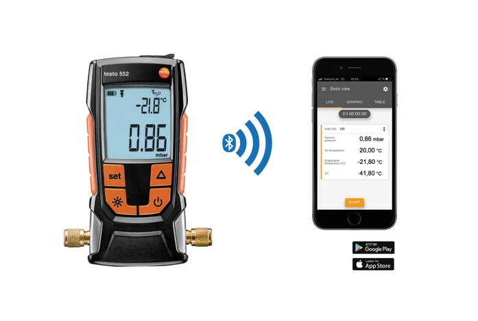 | Lieferumfang | Vakuumfühler testo 552i, Batterien, Prüfprotokoll | Digitales Vakuummeter testo 552, 2 AA-Batterien |