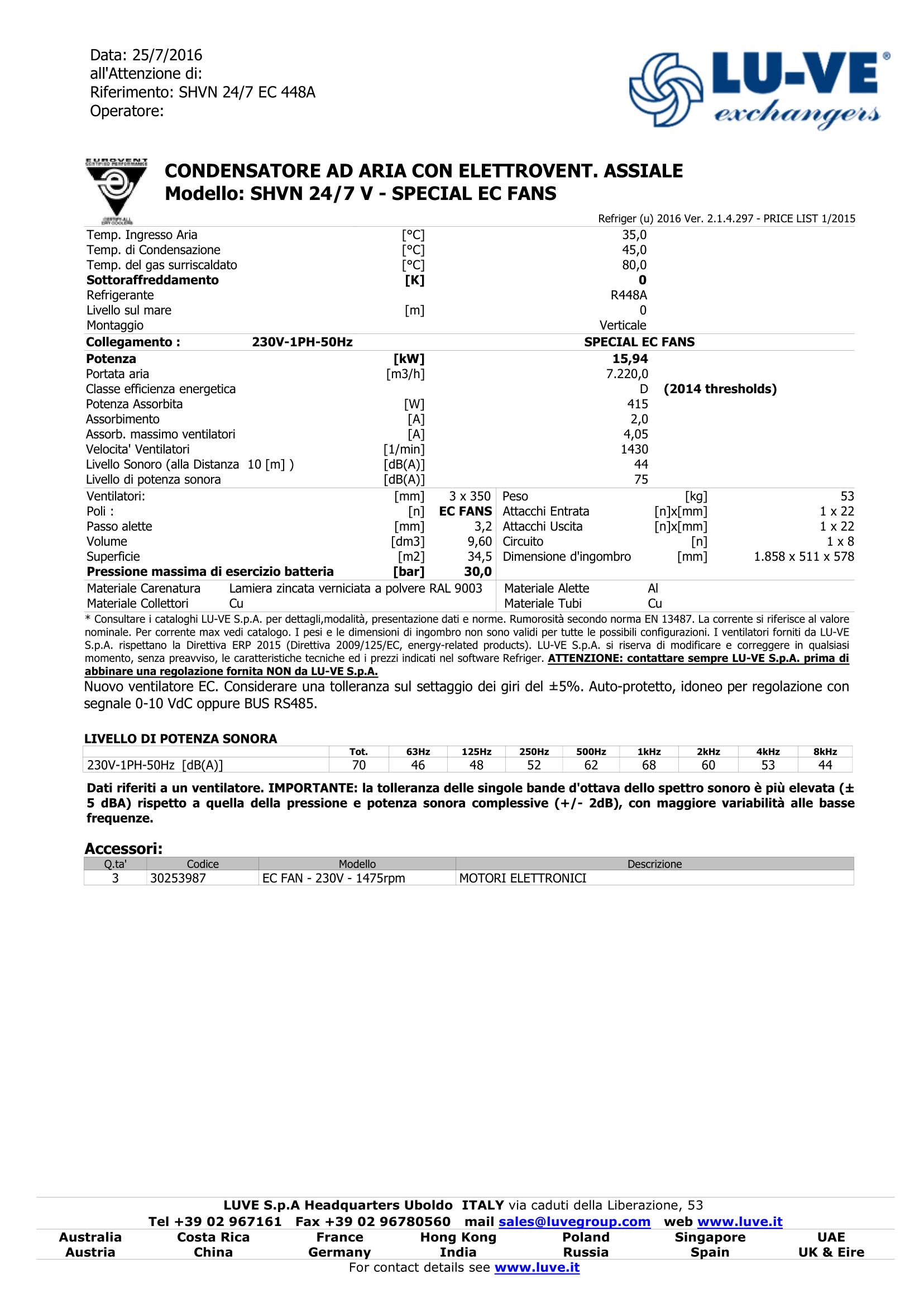 Informations sur le produit "CONDENSATEUR AIR LUVE SHVN 24/7 V VENTIL. EC Super Hitec Ventilé Normale/ Installation verticale"
