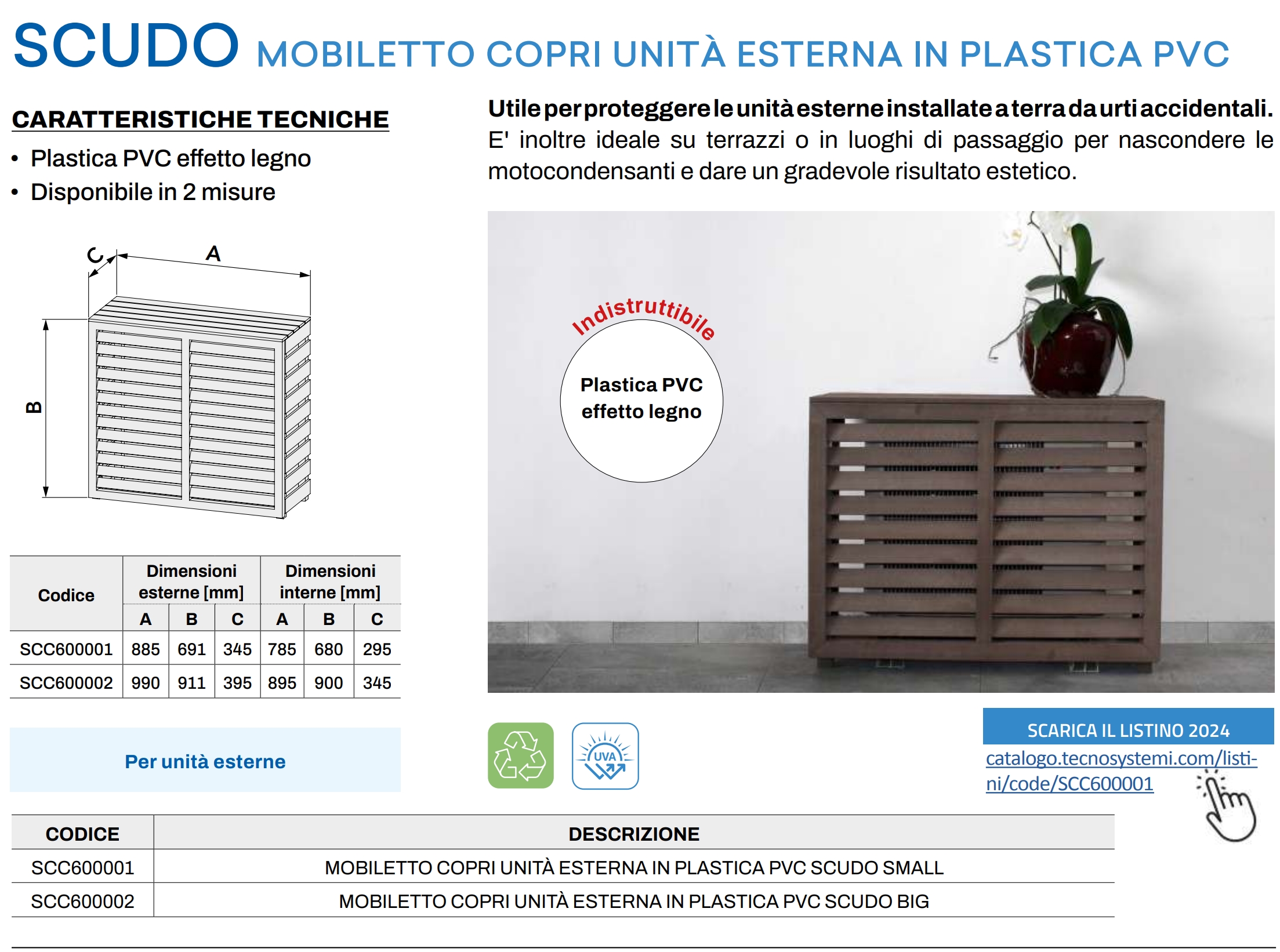 UTILE POUR PROTÉGER LES UNITÉS EXTÉRIEURES INSTALLÉES AU SOL DES IMPACTS ACCIDENTELS. IL EST AUSSI IDÉAL SUR LES TERRASSES OU DANS LES LIEUX DE PASSAGE POUR CACHER LES UNITÉS DE CONDENSATION ET DONNER UN GRAND RÉSULTAT ESTHÉTIQUE.