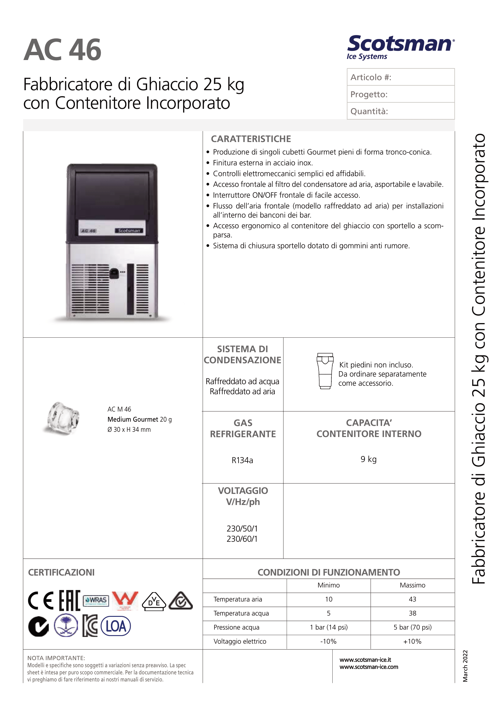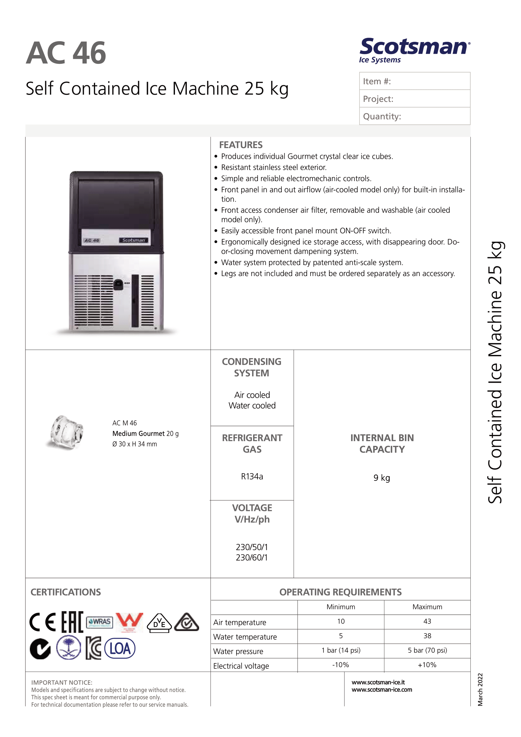 MACHINE À GLAÇON EN CUBES GOURMET AC 47 WS - Medium Gourmet 20 g Ø 30 x H 34 mm (R290)