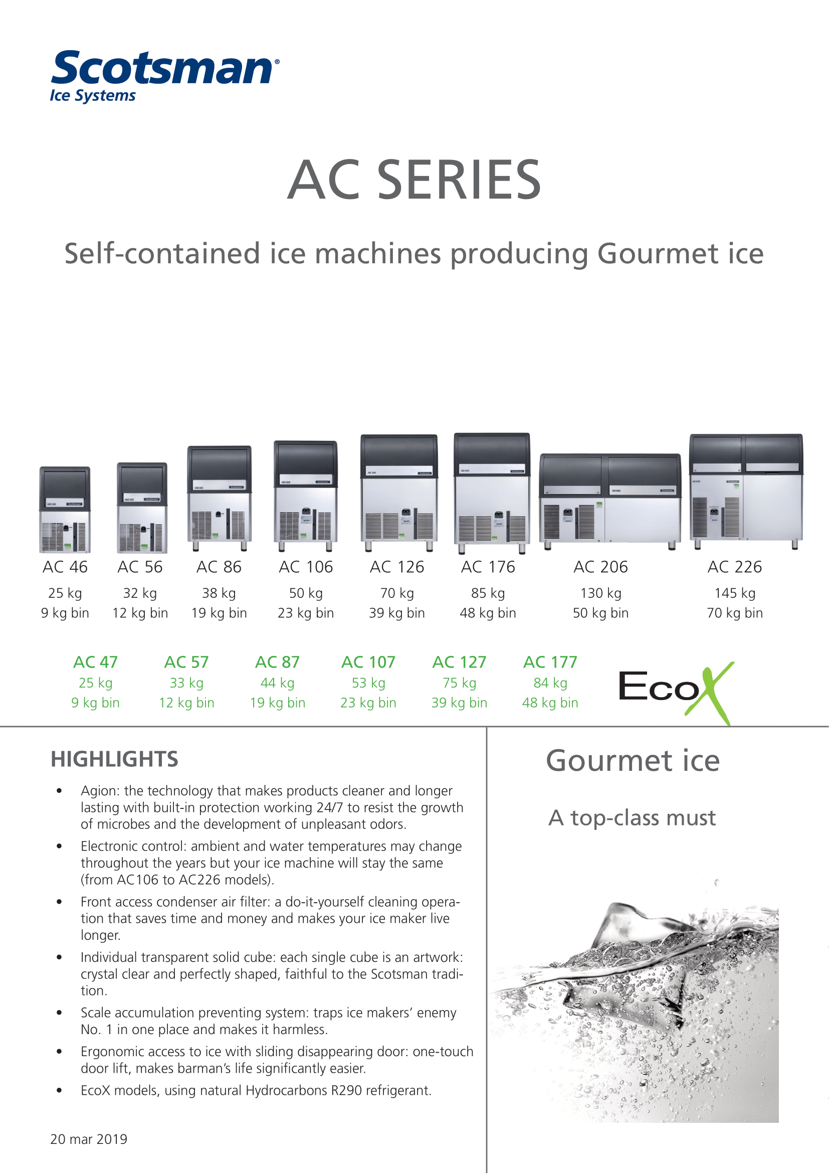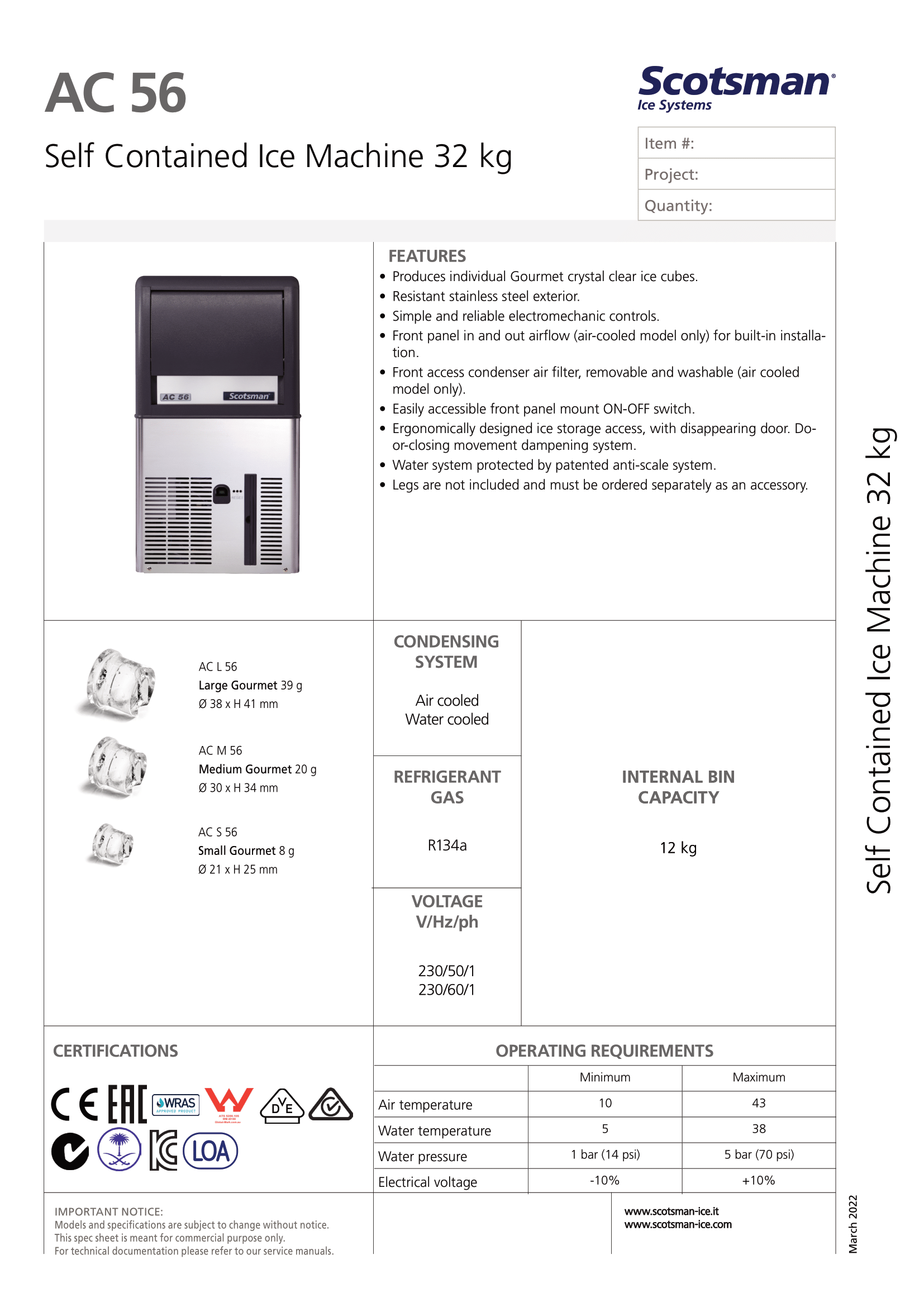 MACHINE À GLAÇON EN CUBES GOURMET AC 57 AS - Medium Gourmet 20 g Ø 30 x H 34 mm (R290)