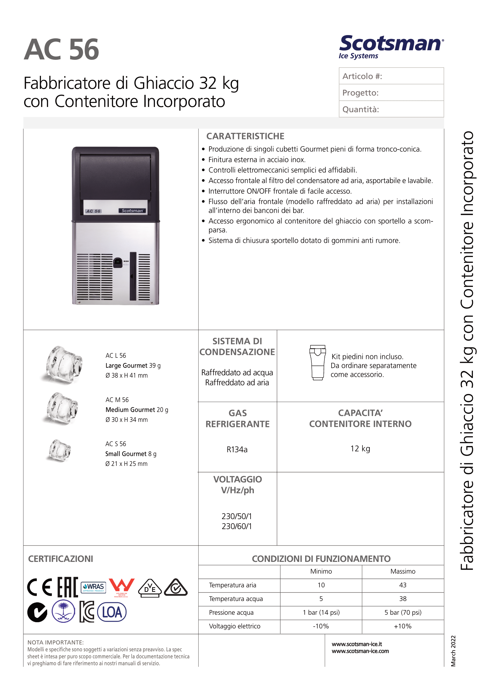 MACHINE À GLAÇON EN CUBES GOURMET AC 57 WS - Medium Gourmet 20 g Ø 30 x H 34 mm (R290)