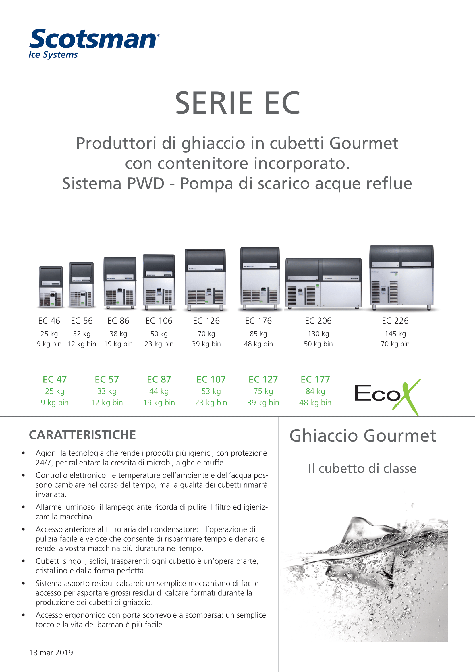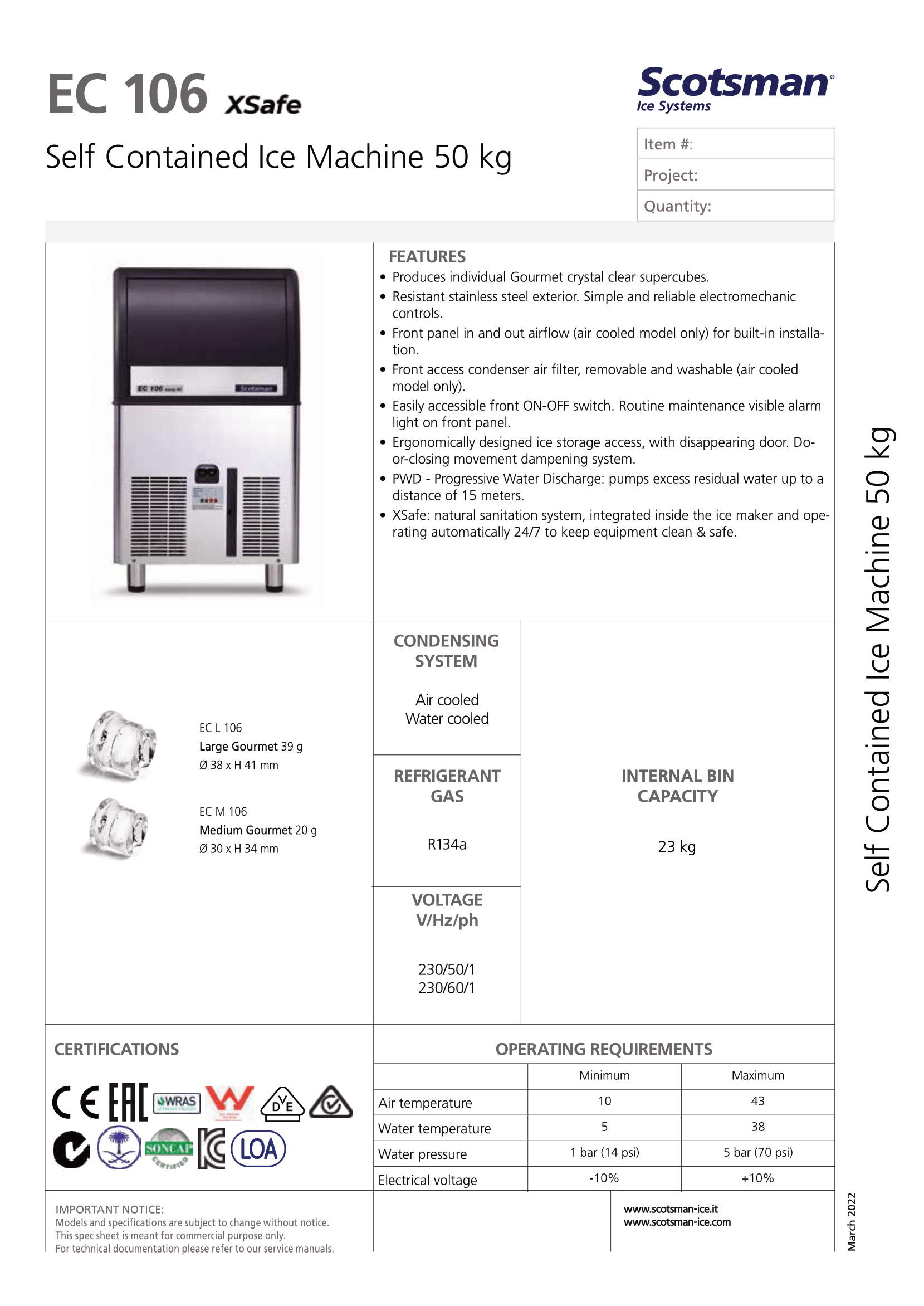 Informations sur le produit "MACHINE À GLAÇON EN CUBES GOURMET EC 107 WS OX - Medium Gourmet 20 g Ø 30 x H 34 mm (R290)"