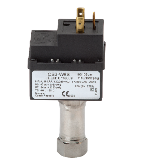 Le pressostat CS3 sert de dispositif de protection pour les compresseurs si la pression du système dépasse les limites souhaitées. Les pressostats sont disponibles en version avec mode de réarmement automatique et manuel.