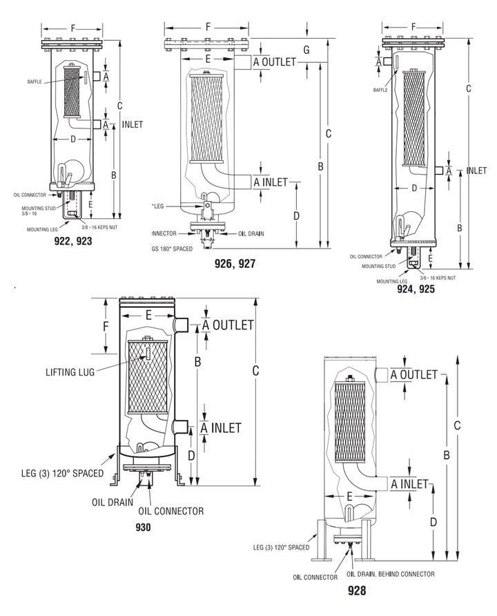 NOTA: Tutti i separatori possono essere acquistati con il filtro Clean-Up® installato . Quando si ordina con il filtro Clean-Up® installato, non viene fornito un filtro di ricambio. Contattare per prezzi e tempi di consegna.