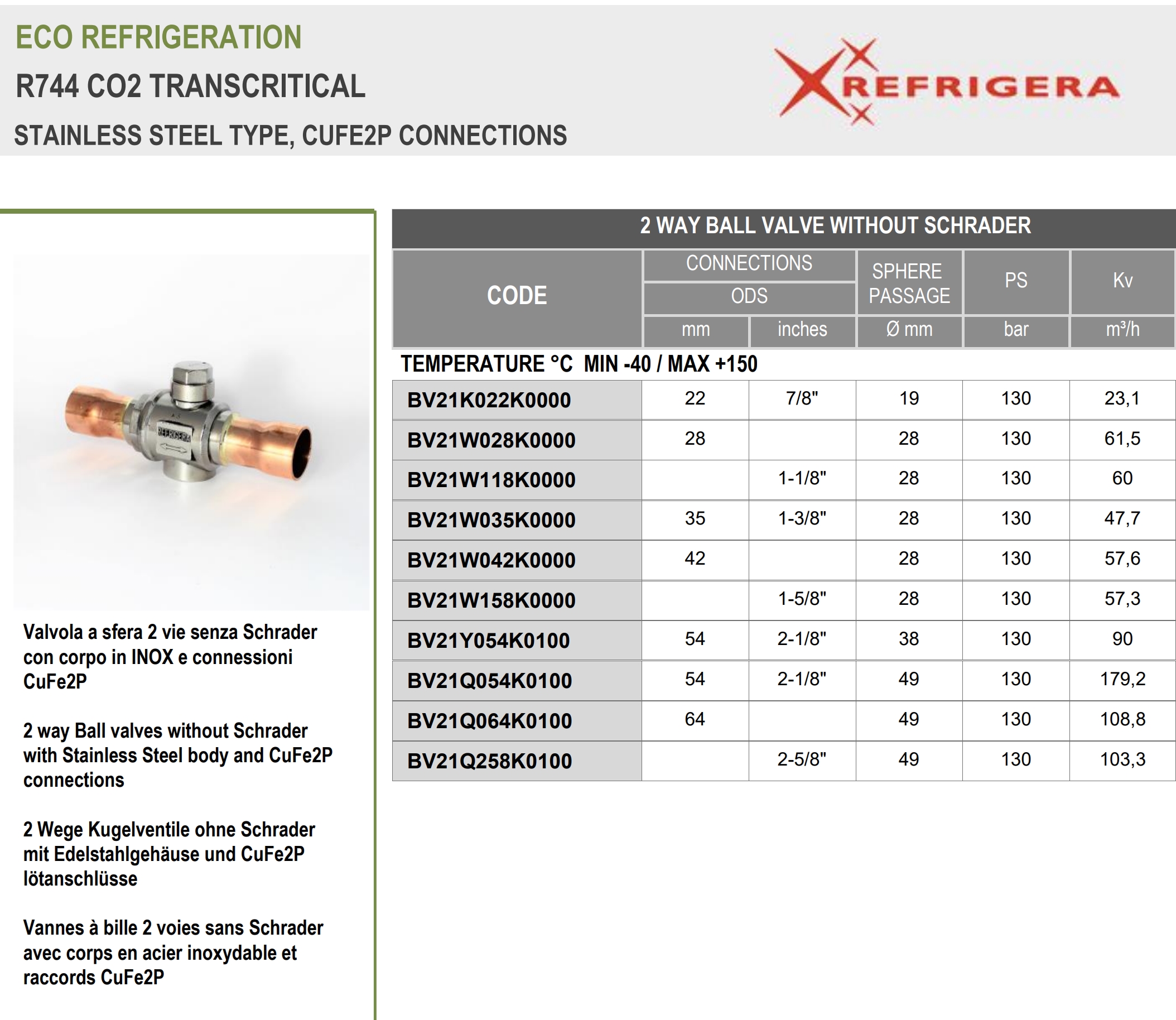 Informations sur le produit "VANNE À BILLE SANS SCHRADER 2 VOIES 2-1/8" ODS R744 CO2 TRANSCRITICAL - ECO REFRIGERATION - Tipo in acciaio inossidabile, conne"
